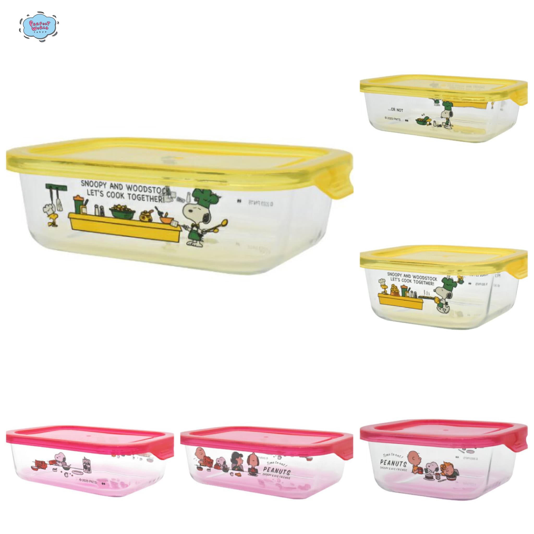 스누피,우드스탁, 유리 용기,반찬통,옐로우, 레드, M 사이즈, S 사이즈, 퍼펙트 월드 도쿄, 신상품, 굿즈,캐릭터 그릇,주방용품