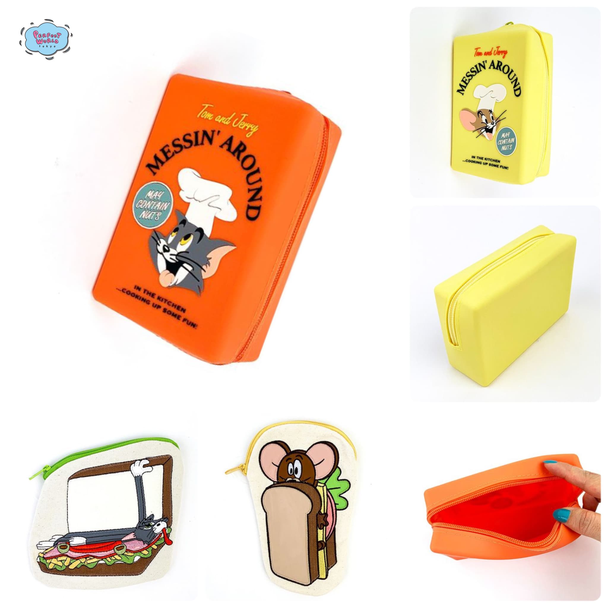 톰과 제리,톰,제리,파우치,실리콘,소품,플랫,오렌지,옐로우,퍼펙트월드 도쿄,신상품,굿즈,캐릭터 굿즈, 톰과제리 파우치,톰과 제리 굿즈,귀여운 파우치,파우치 추천