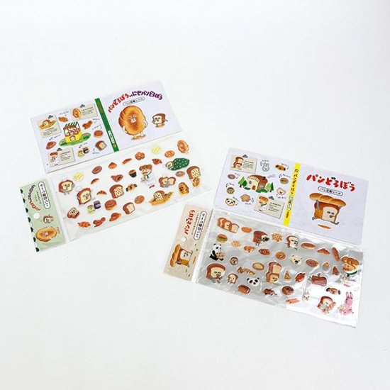 마지막으로 소개할 것은 빵 도감 스티커 2종 세트입니다. 캐릭터와 빵의 소개가 적힌 대지가 매우 활기찬 분위기를 자아냅니다. 스티커를 붙이고 떼어낼 수 있을 뿐만 아니라, 접으면 책 모양이 되는 덤도 있습니다. 원하는 곳에 붙이고 떼어내어 즐겁게 장식해 보는 것은 어떨까요?