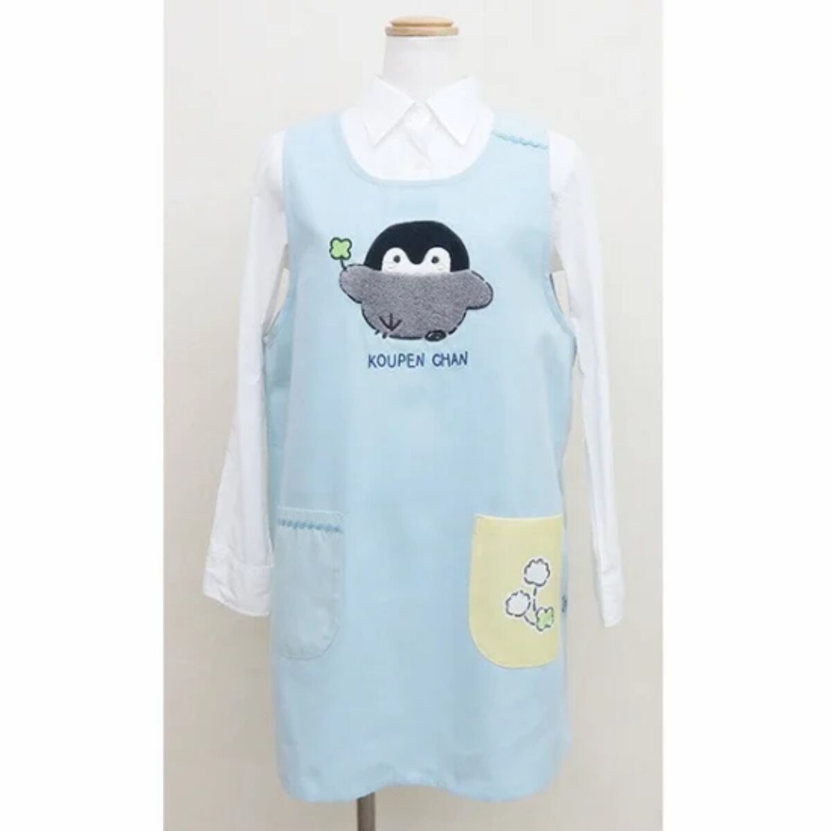 코우펜짱이 앞치마로 변신! 이쪽은 하늘색의 산뜻한 색감입니다. 코우펜짱 앞치마 시리즈는 앞치마 모양 앞치마입니다. 옆면이 버튼으로 되어 있어 탈부착이 편리합니다. 길이 약 85cm 사이즈 : 85cm×0cm×0cm
