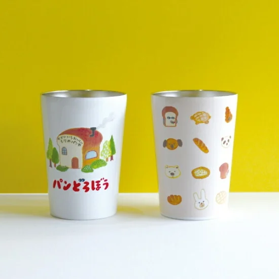 빵도깨비의 부드러운 촉감이 귀여운 텀블러는 또 다른 ‘카쿠레미노쥬츠’ 디자인도 있습니다. 줄줄이 늘어선 빵의 일러스트가 매우 귀엽습니다! 그런데 자세히 보면 빵도둑이 섞여 있습니다!