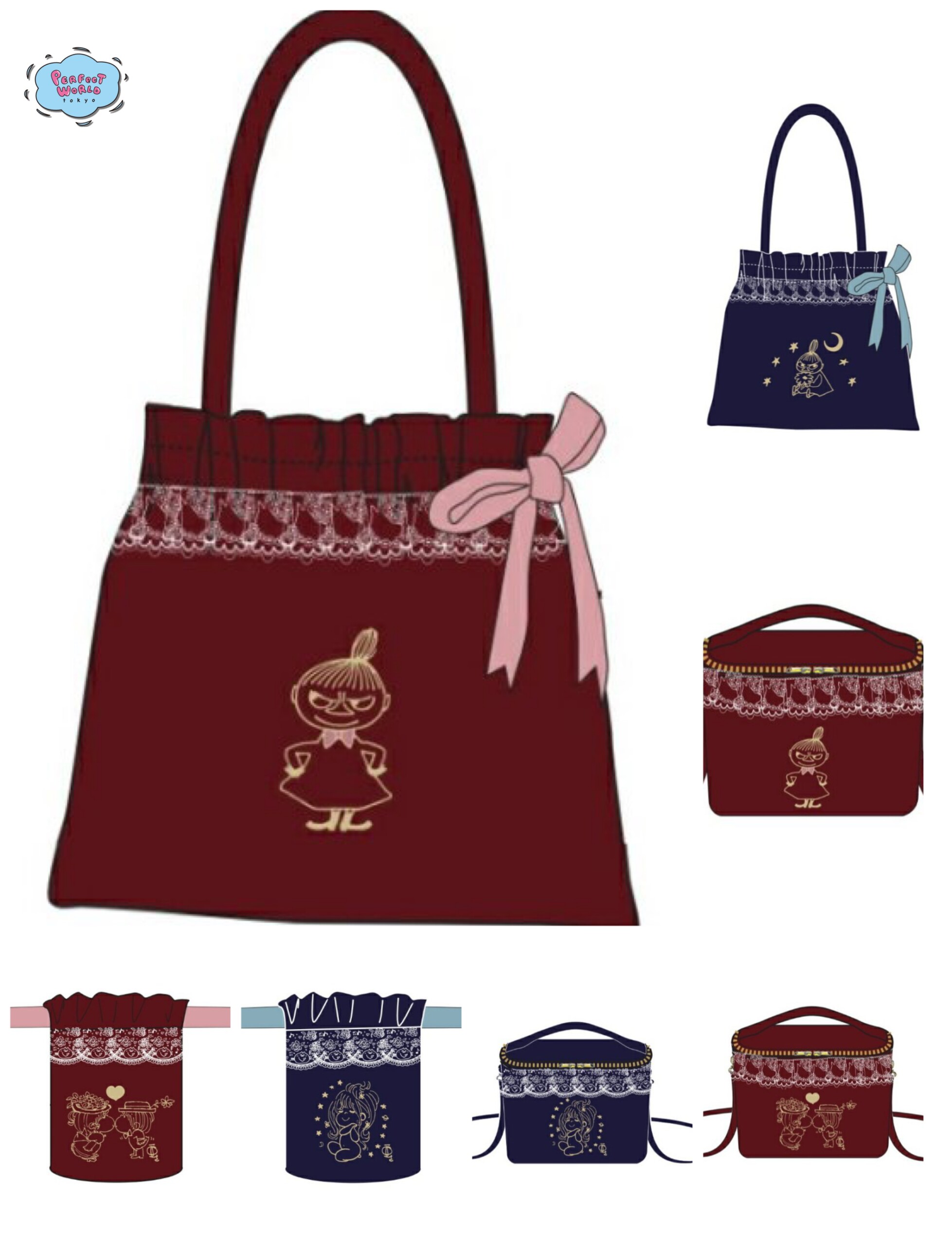 고급스러운 레이스 & 벨벳 소재의 가방과 파우치. 리틀미와 미즈모리 아토가 너무 귀엽습니다!
